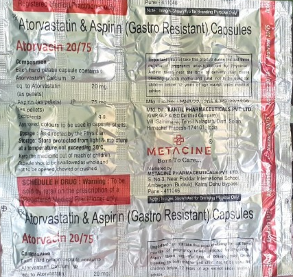ATORVACIN 20/75 CAPSULES (ATORVASTATIN 20MG+ASPIRIN 75MG)