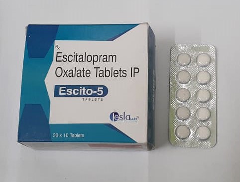 Escitalopram 5mg Tablet is an antidepressant used to treat depression and anxiety disorders. It works by increasing serotonin levels in the brain, which helps improve mood, relieve feelings of sadness and worry, promote relaxation, and enhance overall emotional well-being.