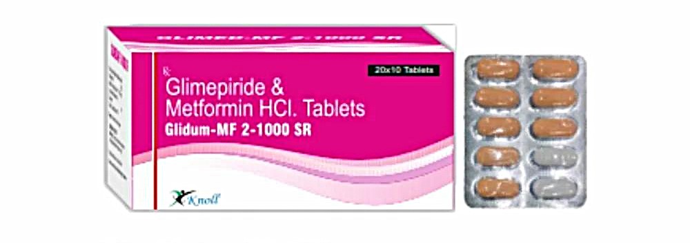 Category: Diabetes Tags: GLIDUM-MF 2-1000 SR TAB, GLIMEPIRIDE 2MG+METFORMIN HCL (SR)1000MG TABLETS Brand: Knoll Healthcare Pvt Ltd
