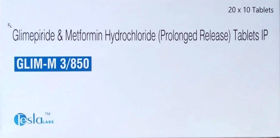 Category: Diabetes Tags: GLIM-M 3/850 TABLETS, GLIMEPIRIDE 3MG+METFORMIN HCL 850MG TABLETS Brand: TESLA LABS PVT LTD