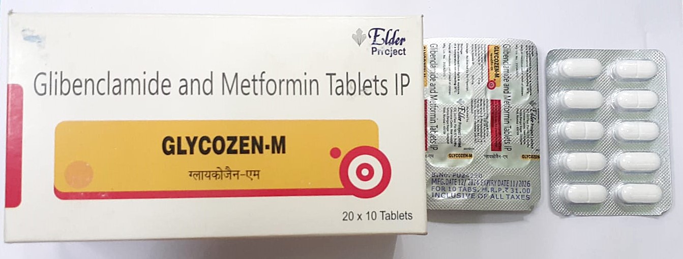 Category: Diabetes Tags: GLIBENCLAMIDE 5MG+METFORMIN 500MG, GLYCOZEN-M Brand: ELDER NEUTRACITICALS PVT LTD
